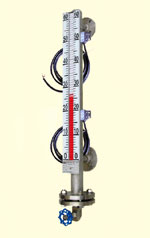 控制型是在翻柱液位計的基礎上增加了磁控開關,在監(jiān)測液位的同時磁控開關信號可用于對液位進行控制或報警;遠傳型是在翻柱液位計的基礎上增加了 4~20mA 變送傳感器,在現(xiàn)場監(jiān)測液位的同時將液位的變化通過變送傳感器、線纜及儀表傳到控制室,實現(xiàn)遠程監(jiān)測和控制。