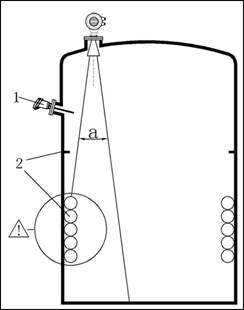 - 如果罐內(nèi)有(1)(2)干涉物件,應(yīng)采用導(dǎo)波管進(jìn)行測(cè)量。