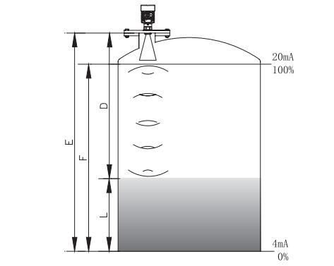 因空罐的距離E已知,則物位L為:L=E-D