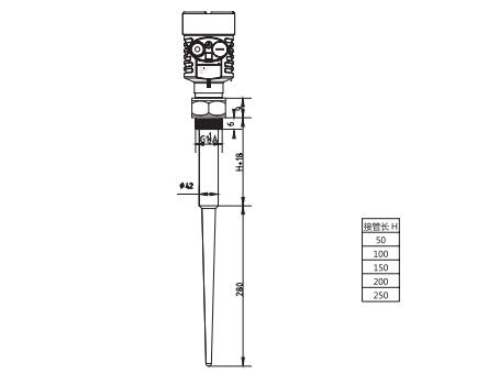 SKD51棒式雷達物位計外型尺寸圖