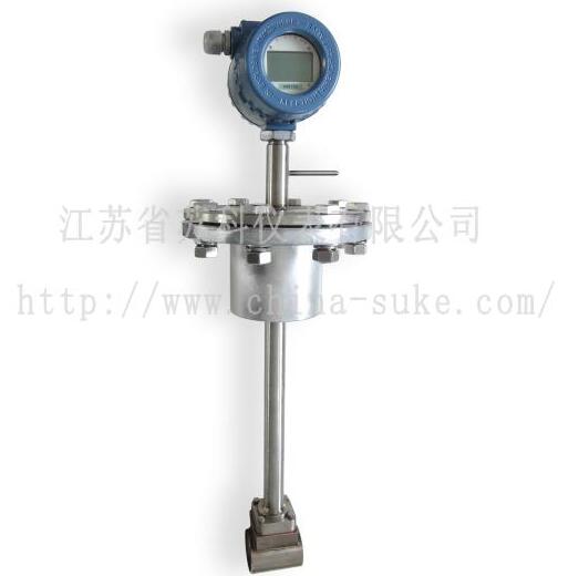 按國際標準化組織IS07145(在環形截面封閉管道中的流體流量測定—在截面一點的速度測量法),采用埋入壓電晶體的渦街測速探頭,插入大口徑工業管道內,將卡門旋渦頻率轉換為與流量成正比的電流或電壓脈沖信號或4~20mADC電流信號。
