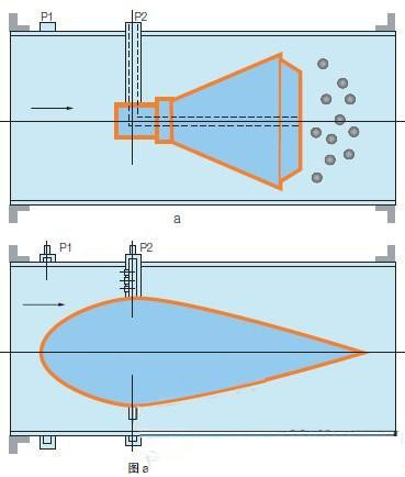 在同一密閉管道內(nèi),當(dāng)壓力降低時(shí),速度會(huì)增加,當(dāng)介質(zhì)接近錐體時(shí),其壓力為P1,在介質(zhì)通過錐體的節(jié)流區(qū)時(shí),速度會(huì)增加,壓力會(huì)降低為P2,如圖一所示,P1和P2都通過V型錐形流量計(jì)的取壓口引到差壓變送器上,流速發(fā)生變化時(shí),差壓值會(huì)隨之增大或減小。也就是說對(duì)于穩(wěn)定流體,流量的大小與差壓平方根成正比。當(dāng)流速相同時(shí),錐體節(jié)流面積越大,則產(chǎn)生的差壓值也越大。V型錐流量計(jì)屬精度、高穩(wěn)定性的新型差壓式流量儀表。