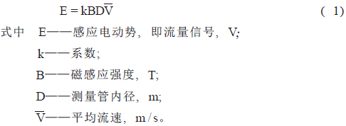 電磁流量計的基本原理是法拉第電磁感應定律,即導體在磁場中切割磁力線運動時在其兩端產生感應電動勢。如圖1所示,導電性液體在垂直于磁場的非磁性測量管內流動,與流動垂直的方向上產生與流量成比例的感應電勢, 電動勢的方向按弗來明右手規則,其值如下式:
