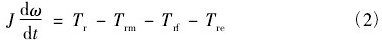 式中: J 為渦輪的轉動慣量; ω 為渦輪的旋轉角速度,t 為時間,Tr為氣流對葉片的推動力矩,Trm為機械摩擦力矩,Trf為流動阻力矩,Tre為電磁阻力矩。