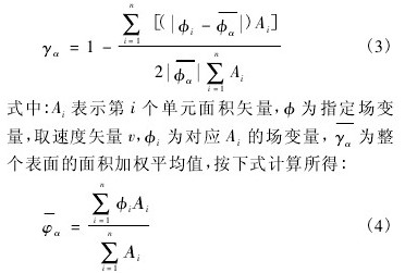 從均勻性指數的定義可以看出,當指定物理量為速度時,γα表示流場速度分布均勻性。面積加權均勻性指數在數值模擬中均可由程序自身提供,這樣大大提高了計算的便捷性。因此,在數值模擬中用 γα評價截面的流動均勻性具有明顯的優勢。