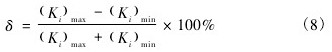 式中: ( Ki)max、( Ki)min分別指在整個流量范圍內,各流量點儀表系數的最大值和最小值。