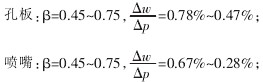 孔板:β=0.45~0.75,ΔwΔp=0.78%~0.47%;
