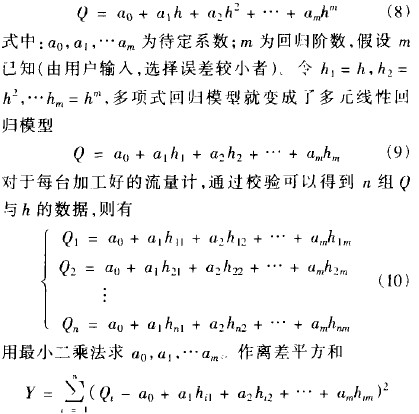 由于每臺流量計的錐管和浮子的加工誤差不可能一致,每臺金屬管轉子流量計的流量值p和浮子位移h的作線性關系也不可能一樣,所以在實際制造時流量計的凸輪都要逐臺校驗加工,設口與h的非線性回歸模型為