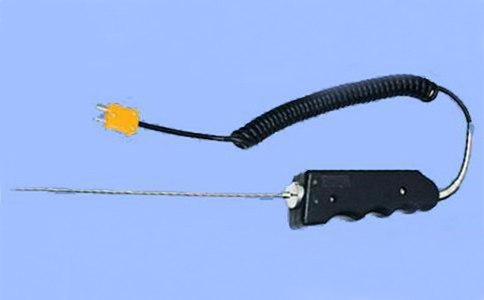 WRNK-181、WREK-181型手柄式熱電偶又稱手持式熱電偶專供測量各種形狀的固體介質的表面溫度以及測量液體、氣體的溫度。手柄式熱電偶使用范圍很廣,不受物體表面的形狀限制,外形輕巧,攜帶方便,由于手柄式熱電偶具有直徑小、可彎曲、抗震動、熱響應時間快和緊固耐用、可靠性好等優點,該產品與數字顯示儀配合使用可直接測量并顯示不同生產過程中0~1200℃范圍內的各種介質的溫度,被廣泛用于冶金、化工、紡織、印染、造紙、橡膠、塑料、陶瓷、糧倉等工業部門、企業。